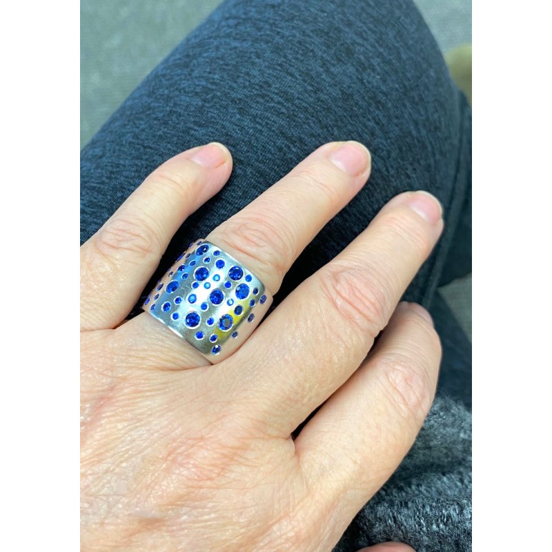 Substantial (0.8" and 25 grams) Sterling silver ring with Kyanite stones