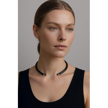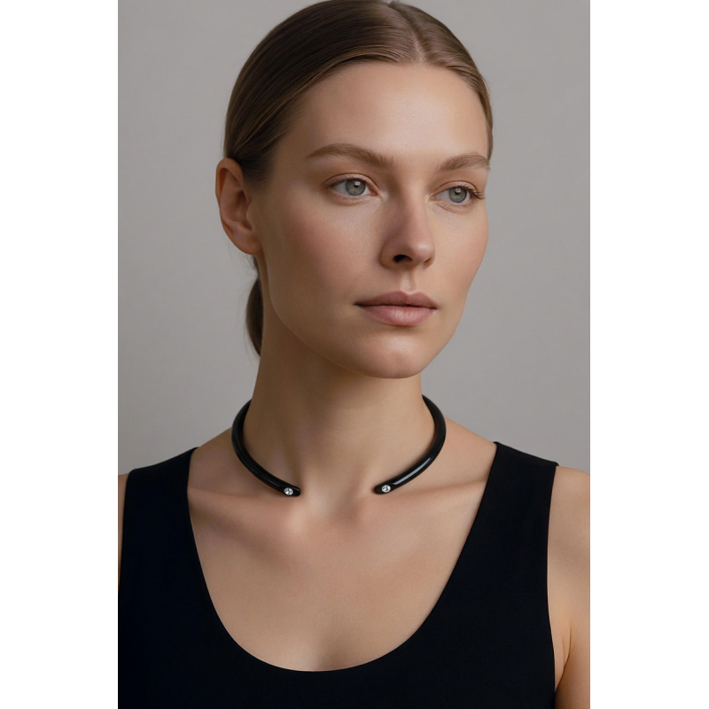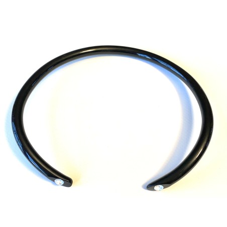 Thin Lucite tour, carved and shaped under heat, dipped in a color bath, with 1 Swarovski crystal at each end.