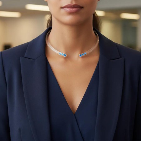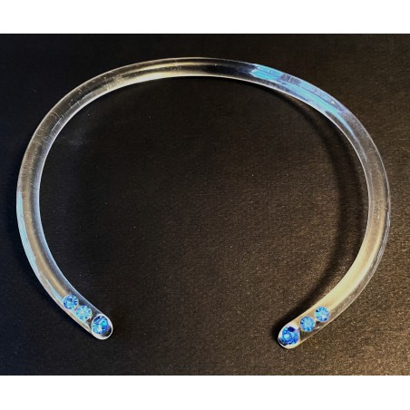 Thin Lucite tour, carved and shaped under heat, kept clear, with 3 Swarovski crystals at each end.