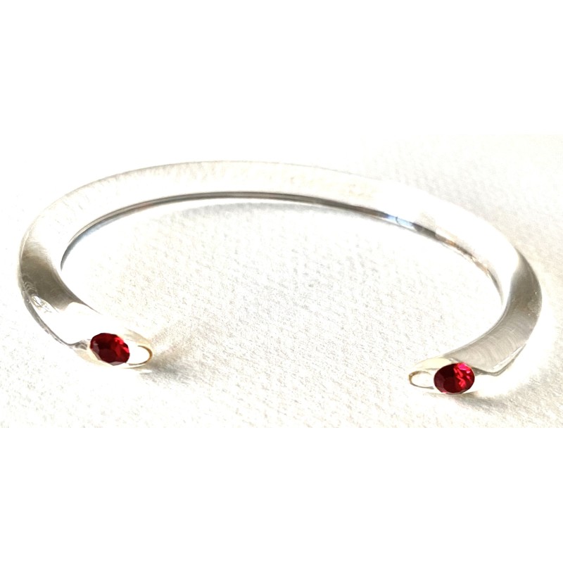 A thin Lucite bangle, shaped under heat, kept clear, with a Swarovski at each end.