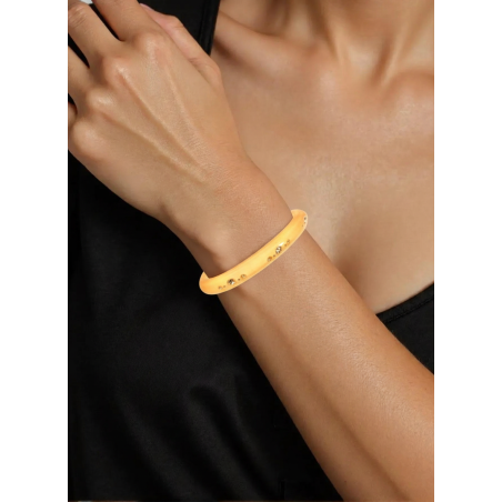 An exquisite small bangle, shaped under heat, inlaid with Swarovski crystal drilled by hand.