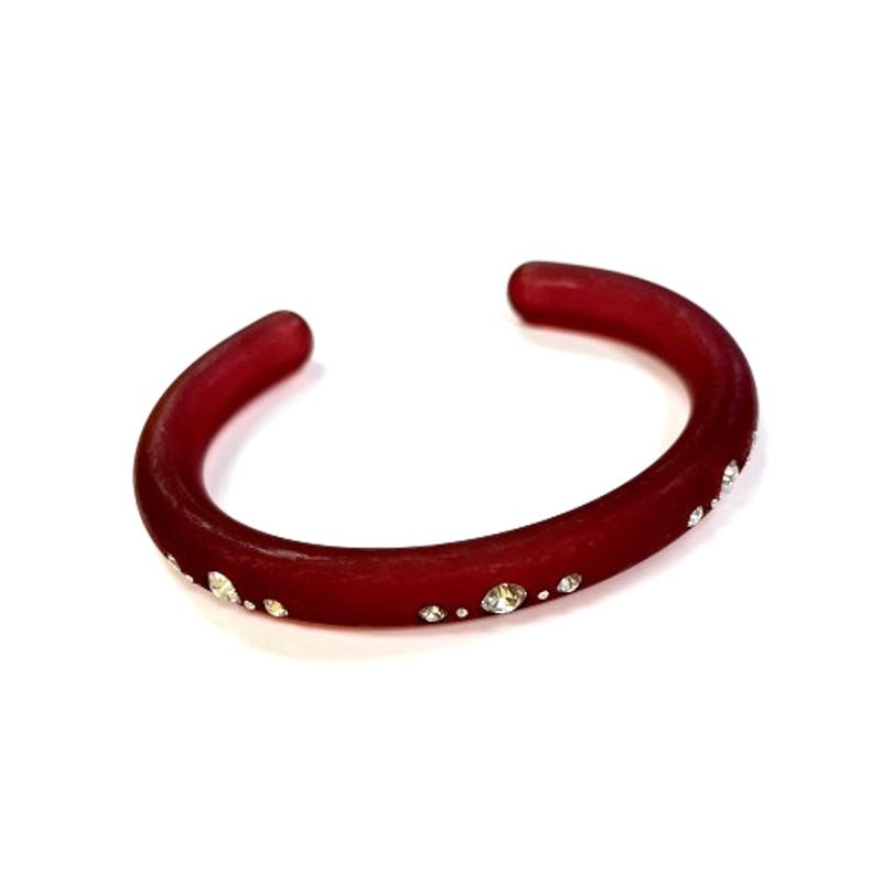An exquisite small bangle, shaped under heat, inlaid with Swarovski crystal drilled by hand.