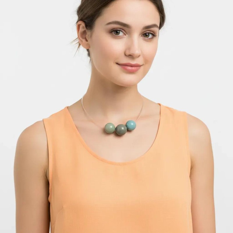 Necklace w/ three Murano glass balls on a Micro rubber cord & adjustable closure