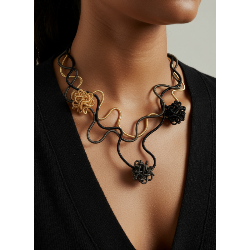 18" adjustable necklace of hand coiled wire w/ coiled wire "puffs"