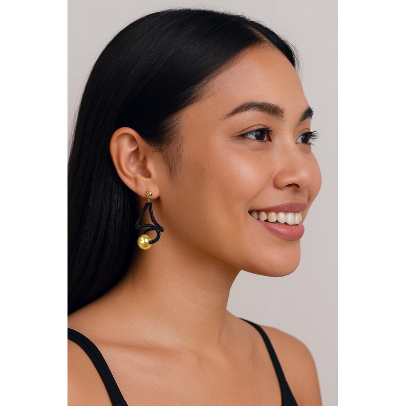 SGP Sat earring sm - black with gold pearl