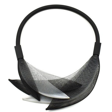 Discover a magical new design from Christina’s latest collection, featuring a flexible rubber tour at the back for exceptional comfort and movement. Two translucent mesh “wings” overlap gracefully in front, creating an elegant, distinctive silhouette in sublime, luminous colors. Light, modern, and full of fluid motion, this contemporary necklace adds a touch of artistic sophistication to any outfit.