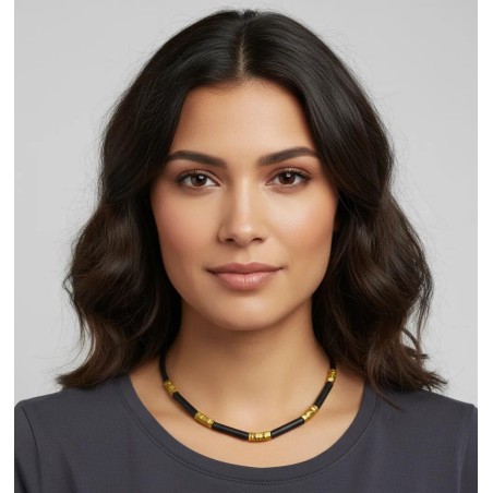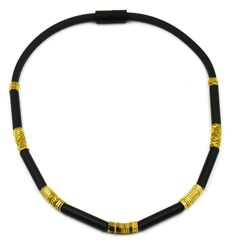 Elevate your everyday style with this simple yet contemporary necklace, designed with sleek anodized‑aluminum cylinders accented by thin hematite rings for a refined, modern look. Lightweight and effortlessly chic, it closes with a secure magnetic clasp for easy wear. A perfect minimalist accessory that pairs beautifully with both casual and sophisticated outfits.