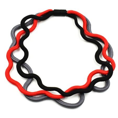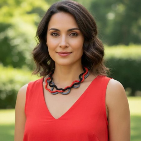 Elevate your casual style with this minimalist three‑thread necklace, crafted from soft cords shaped into gentle waves thanks to an invisible internal support. With no beads or ceramic accents, the beauty lies in its clean, contemporary lines and effortless movement. Lightweight, modern, and full of subtle attitude, it’s the perfect accessory for everyday outfits that call for understated sophistication.