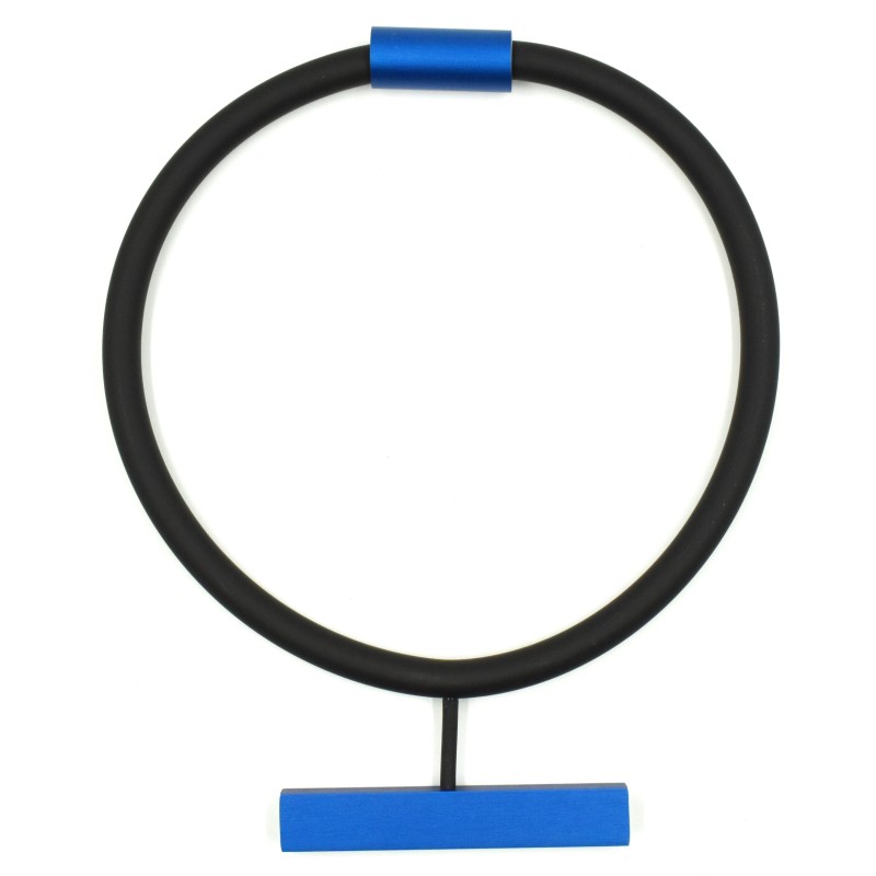Embrace pure, modern minimalism with this striking necklace featuring a flexible rubber tour paired with a thick anodized‑aluminum bar mounted perpendicularly across the front. The clean, architectural line of the metal bar creates a bold, unembellished statement—nothing frilly, nothing girlie, just pure contemporary design at its finest.
