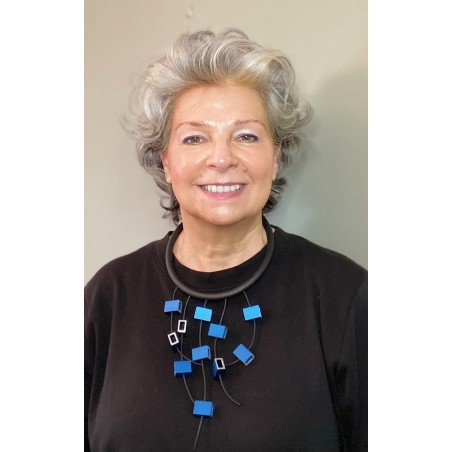 All strands connect to a flexible rubber tour, offering a clean, contemporary silhouette that sits comfortably and maintains its shape. Artistic, architectural, and unmistakably modern, this design brings together innovative materials and sculptural flow for a look that stands out with ease.