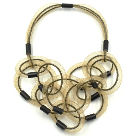 Experience modern elegance with this sophisticated 24" necklace, featuring transparent mesh loops anchored by a deeply colored inner cord for a striking 3D effect. Light as a feather yet visually distinctive, it offers beautiful floating movement that adds effortless grace to any outfit. Finished with a secure magnetic closure, this contemporary design blends texture, depth, and airy refinement for a look that stands out with subtle sophistication.