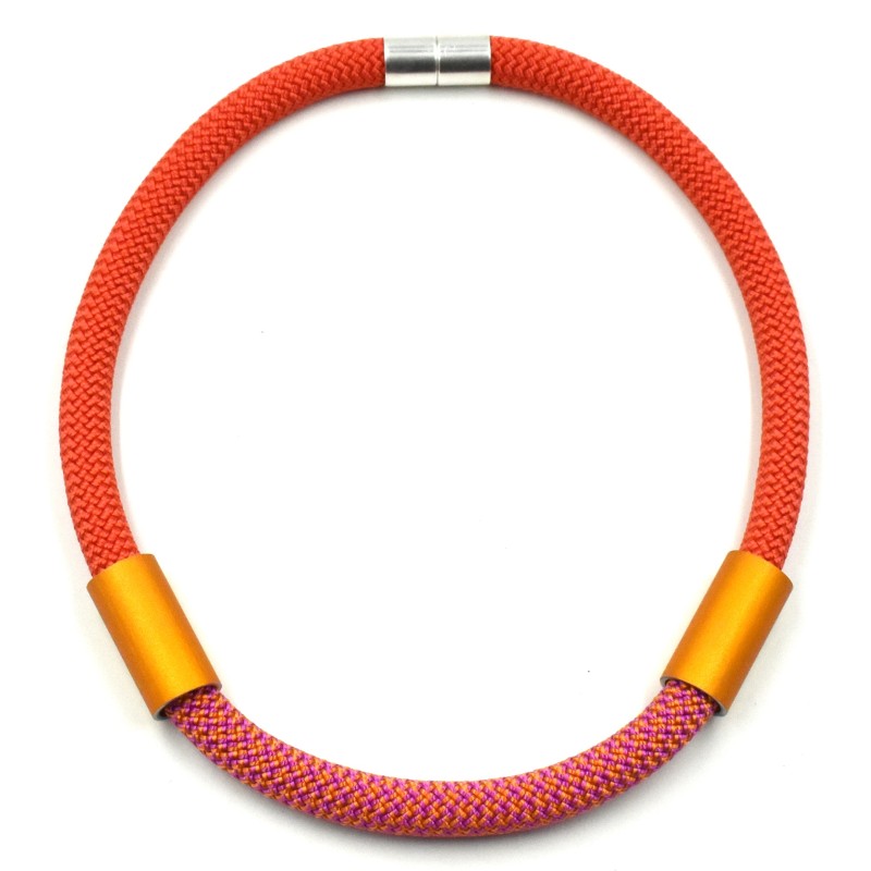Christina’s signature necklace is a minimalist essential designed for effortless, everyday style. Made with two soft cotton cords in contrasting colors, this lightweight accessory is available in hundreds of customizable color combinations—perfect for coordinating with any outfit. Two anodized‑aluminum cylinders add a sleek, modern accent, while the magnetic closure ensures easy, secure wear. Looking for a specific color match? Contact us and we’ll create the ideal combination just for you.