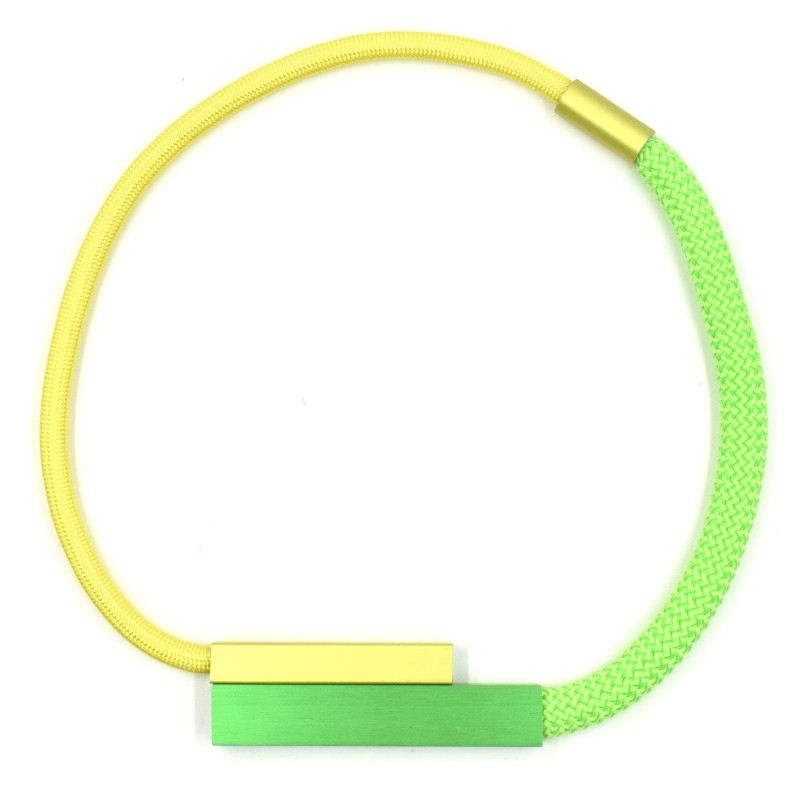 Paired with a flat, silky‑soft cord in a complementary hue, this necklace delivers a lightweight feel and a refined contemporary aesthetic. Wear it multiple ways to express your personal style—its combination of vibrant anodized aluminum and smooth textile cord makes it a standout accessory for everyday outfits and elevated ensembles alike.