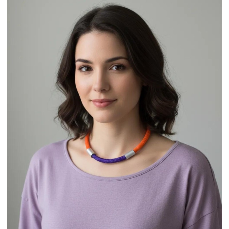 Christina’s signature necklace is a minimalist essential designed for effortless, everyday style. Made with two soft cotton cords in contrasting colors, this lightweight accessory is available in hundreds of customizable color combinations—perfect for coordinating with any outfit. Two anodized‑aluminum cylinders add a sleek, modern accent, while the magnetic closure ensures easy, secure wear. Looking for a specific color match? Contact us and we’ll create the ideal combination just for you.