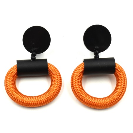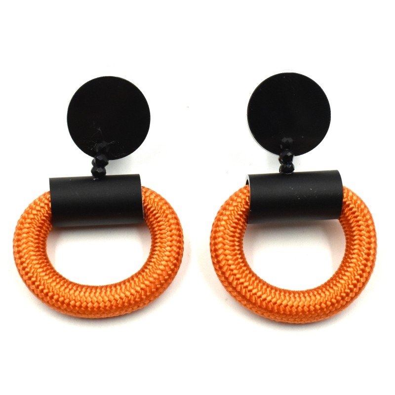 dainty, colorful post earrings made of soft cord with an anodized aluminum accent