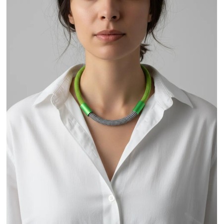 Christina’s signature necklace is a minimalist essential designed for effortless, everyday style. Made with two soft cotton cords in contrasting colors, this lightweight accessory is available in hundreds of customizable color combinations—perfect for coordinating with any outfit. Two anodized‑aluminum cylinders add a sleek, modern accent, while the magnetic closure ensures easy, secure wear. Looking for a specific color match? Contact us and we’ll create the ideal combination just for you.