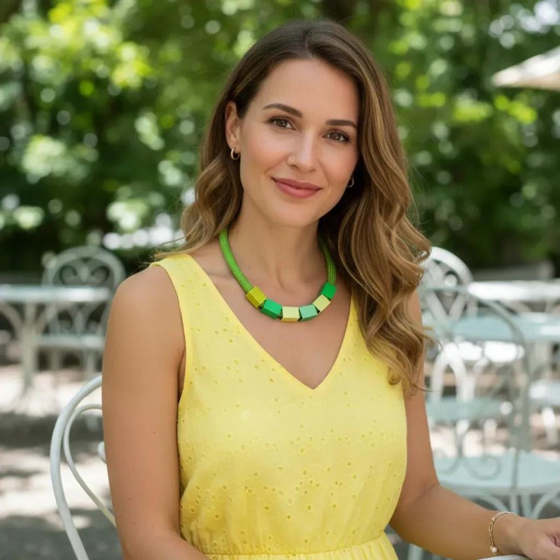 One of the most beloved designs in Christina’s collection, this iconic necklace features five richly anodized aluminum cubes in vibrant, scrumptious colors. Each cube is paired with a soft, color‑coordinated cord that enhances the necklace’s simple, chic, and effortlessly modern look.