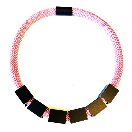 One of the most beloved designs in Christina’s collection, this iconic necklace features five richly anodized aluminum cubes in vibrant, scrumptious colors. Each cube is paired with a soft, color‑coordinated cord that enhances the necklace’s simple, chic, and effortlessly modern look.