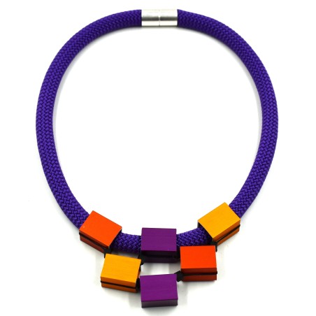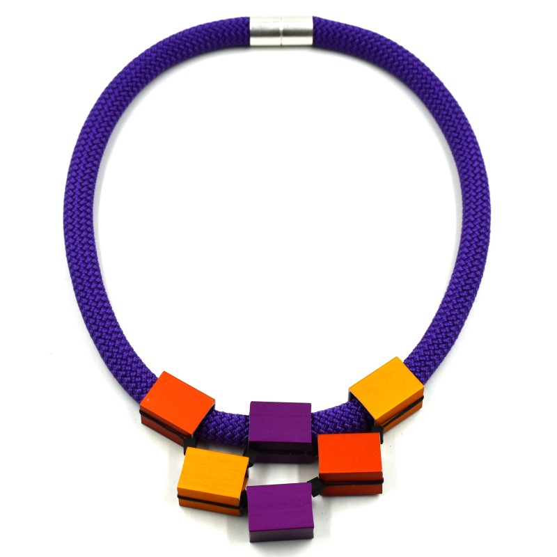 Necklace - Aluminum cubes pyramid w/ a thick rubber cord