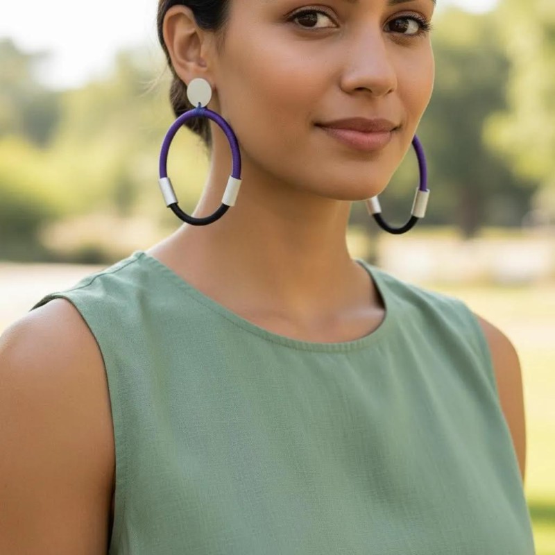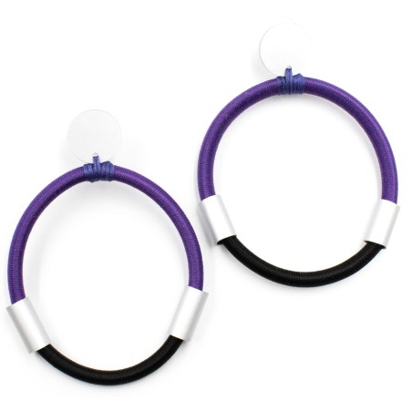 Very light, 2" in diameter cotton loop post earrings with aluminum accents.